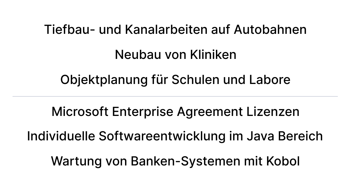 ➜ Die KI gleicht deine Anfrage inhaltlich mit den Leistungsbeschreibungen ab und zeigt dir, was wirklich passt.